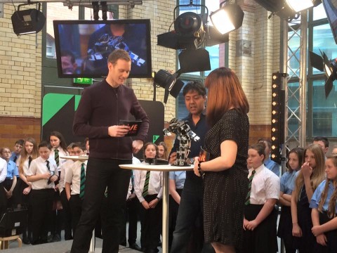 Last Wednesday 24th February, Professor Sethu Vijayakumar and PhD students, Alexander Enoch (Edinburgh) and Iris Kyranou (Heriot Watt) were live on BBC micro:bit Live Lesson at 11-11.45am . Professor Sethu Vijayakumar gave an insight of the Valkyrie robot that arrived in Edinburgh last Monday 29th February 2016. Alexander Enoch and Iris Kyranou demoed some of the robots that are part of the Edinburgh Centre for Robotics Robotarium East, such as the prosthetic hand.